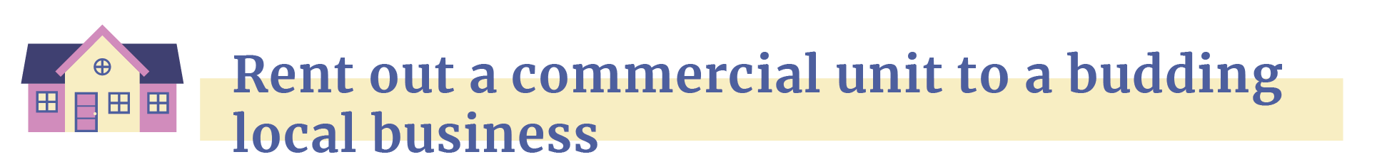 Empower local businesses by renting out a commercial unit. If you invest in commercial real estate you can enjoy better leasing rates, longer lease contracts, and great potential for capital appreciation compared to residential real estate.